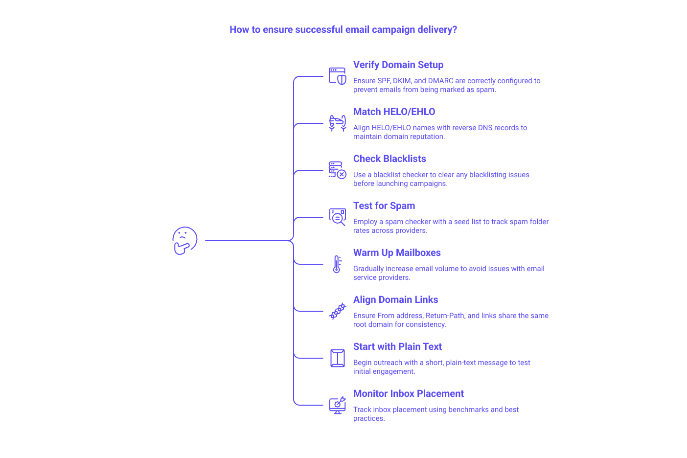 - Use a blacklist checker for your domains and IP addresses. Clear any blacklisting before launching campaigns.